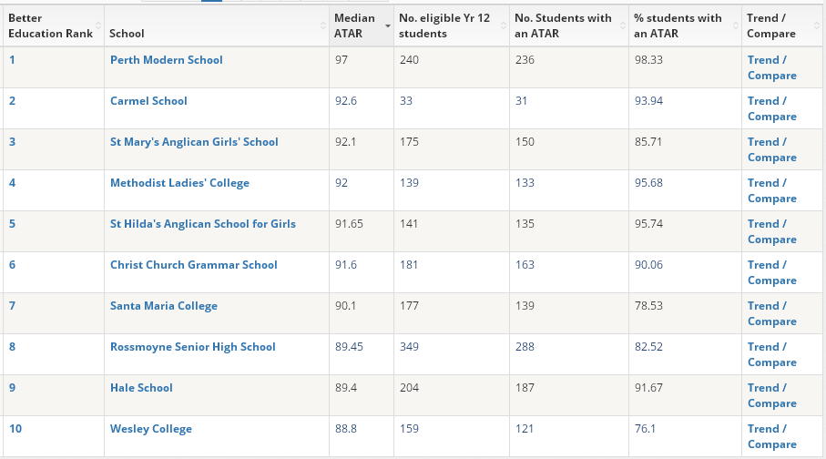 其中,西澳唯一一所通過學術(shù)選拔入學的公立高校Perth Modern School以絕對優(yōu)勢再次成為西澳最好的學校。