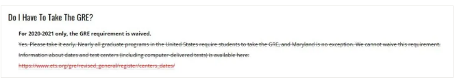 1. 受疫情影響,學校表示2021年秋季入學周期中申請者可以不提交GRE成績(之前說明GRE要求的地方也被劃線表示作廢)。