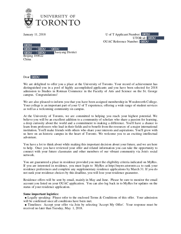 賈同學, 國內普高生高考一本壓線轉身錄取至世界排名前20的多倫多大學及排名前30的UBC大學商學院錄取!