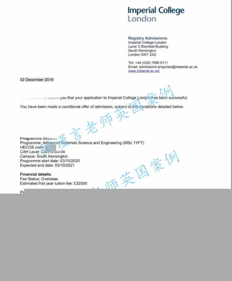 帝國理工錄取案例:高級材料科學與工程碩士,無雅思提前錄取