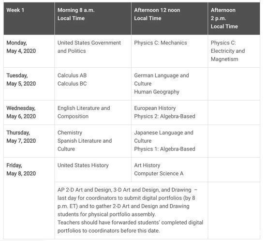 另外,以下這幾項科目將會使用portfolio進行遞交,所有遞交的截止日期將被延長至美東時間的5月26日11:59pm(也就是國內(nèi)的5月27日中午11:59分)參考這些科目的學生將會收到額外的明細規(guī)定。