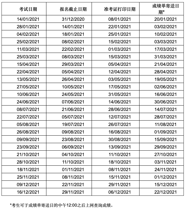 2021年雅思生活技能類考試安排表