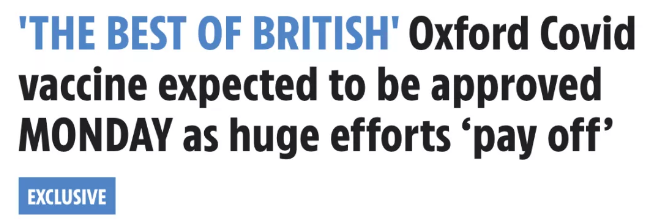 除了國產疫苗,據英國《太陽報》報道,英國藥監局在今天(12月28日)正式批準使用牛津疫苗,所以疫苗將按原計劃,從1月4日開打,預計2月底將接種1500萬人。英國政府也已明確,中國留學生也可接種該疫苗。