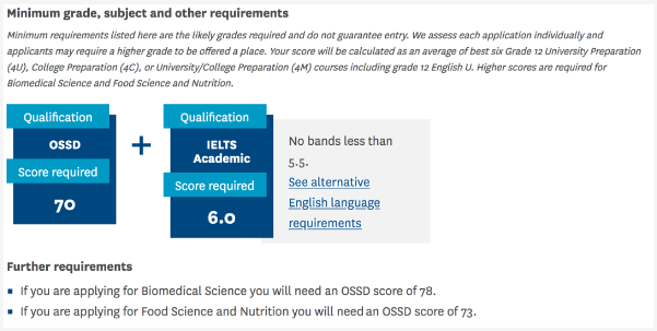 五湖OSSD學生健康科學或護理學最低錄取標準